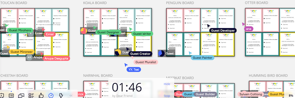 A new gap existed between people who soon felt comfortable working online, and those who didn’t have the chance to do so: Mainly those of my clients who work in the public sector struggled with non existent technical infrastructure, no access to microphones and cameras, restrictions in use of helpful software. After a while, some of them found privately organized workarounds, but on the whole, cooperation was painful. A number of my most memorable new formats came up after summer 2020 and built the other end of the spectrum: A fabulous week-long workshop with students, online and offline, synchronously and asynchronously, on Howspace. Self-designed adventure games with Zoom and social media platforms. Leadership coachings online with the Zurich Resource Model (c), and a pop-up conference in a combination of studio, Zoom and Twitch.